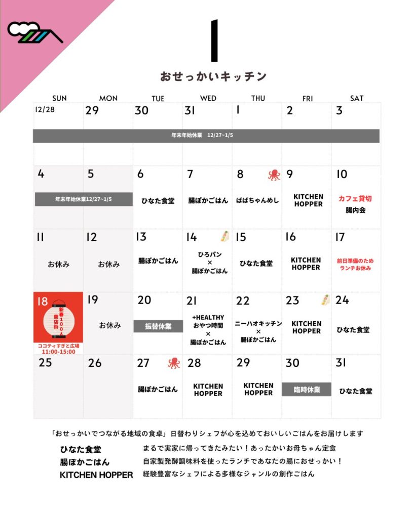 【ひとつ屋根の下】1月のカレンダー