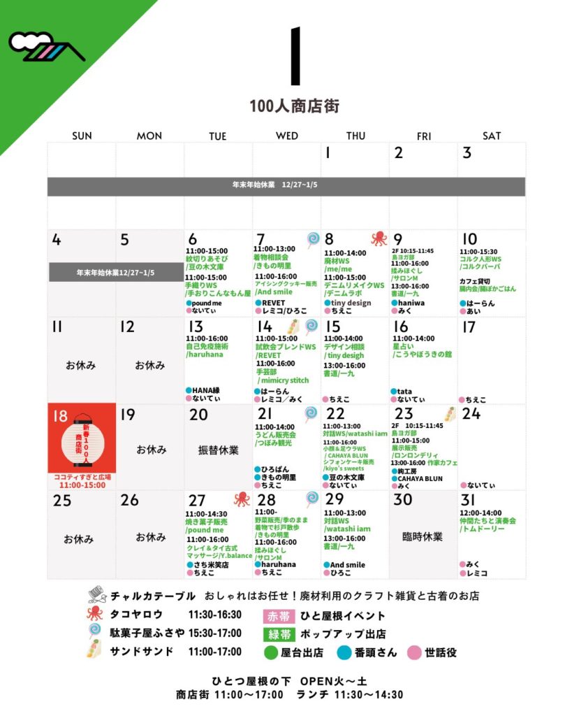 そして 1月18日(日) は、新年を祝って小さな商店街のお祭り「新春100人商店街」 を開催します🎌