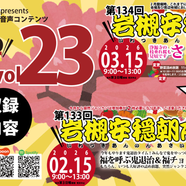 岩槻安穏朝市音声コンテンツ「朝市のウラ」。この番組では、埼玉県さいたま市岩槻区、浄源寺というお寺の駐車場をお借りして、2011年10月から毎月第3日曜に開催している、岩槻安穏朝市のあれやこれやをお話ししています。これから…